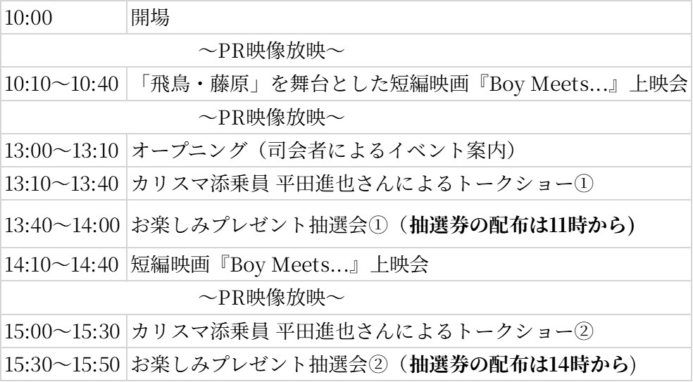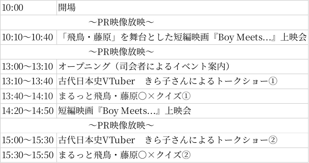 「飛鳥・藤原」の魅力や楽しみ方を紹介するトークショーや、プレゼントが当たる抽選会やクイズ大会など、もうすぐ世界遺産の「飛鳥・藤原」を味わい尽くす2日間となっております。