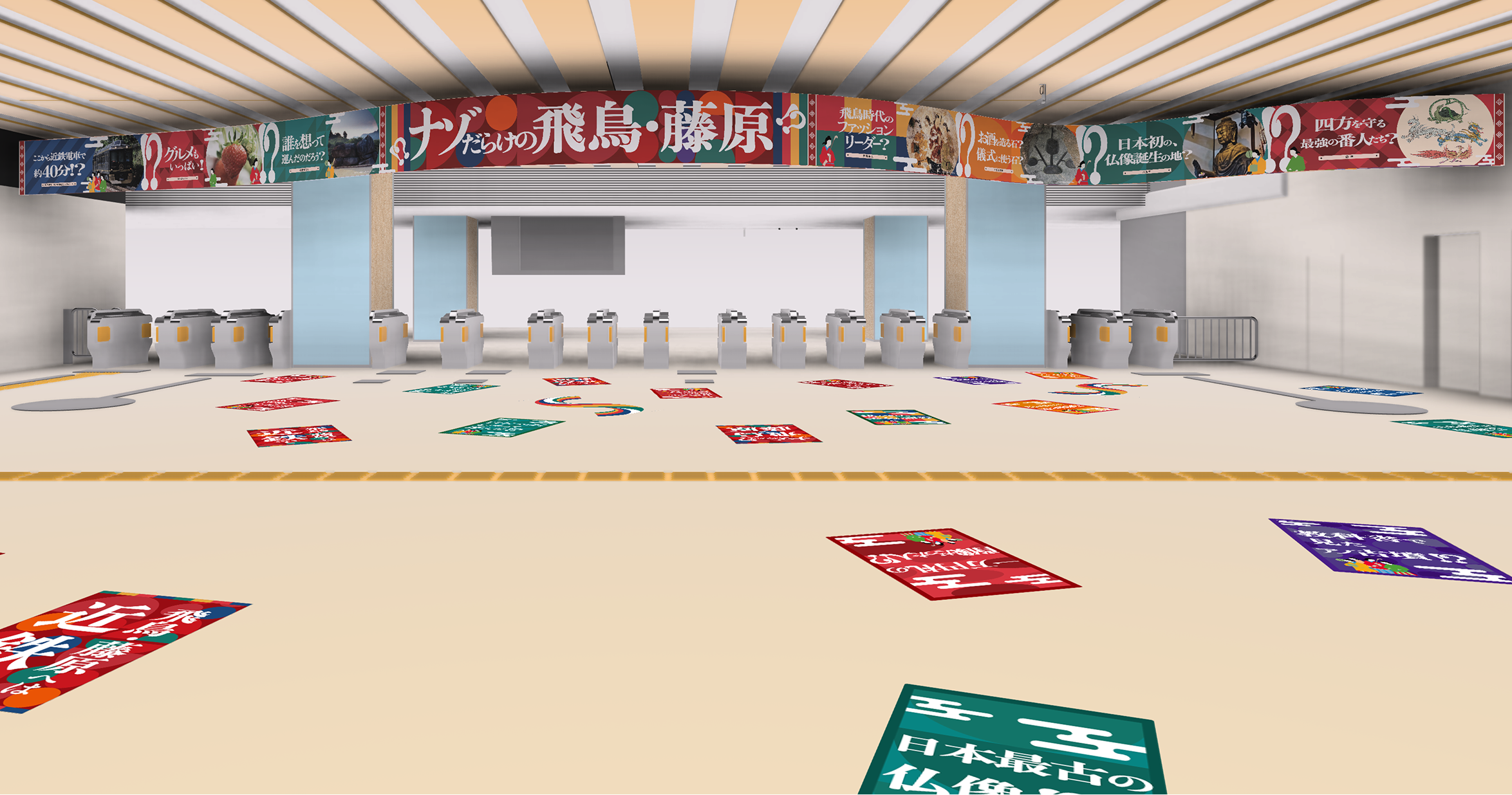 近畿日本鉄道株式会社において、世界遺産登録を目指す奈良県「飛鳥・藤原」エリアの魅力を発信するため、同エリアをイメージした装飾「ナゾだらけの飛鳥・藤原」が大阪阿部野橋駅で行われます。